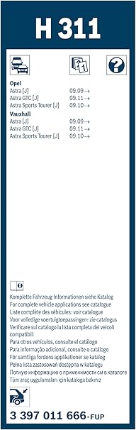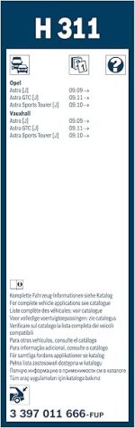 Rear Arka Silecek Opel Astra J (2009-2015), Astra GTC (2012-2014) [300 mm] H311 3397011666