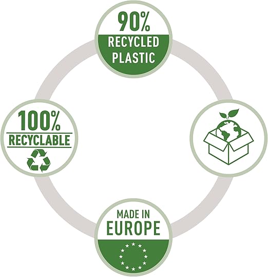 % 90 geri dönüştürülmüş plastikten yapılmıştır (harici olarak denetlenmiş ve UL tarafından onaylanmıştır),% 100 geri dönüştürülebilir ve iklime zarar vermez