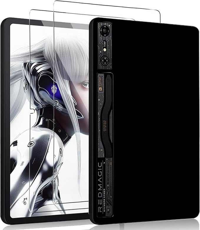 RedMagic Nova Gaming Tablet için Kılıf 10,9 inç + [2 Adet] Koruyucu Folyo, Ultra İnce [Darbeye Dayanıklı] [Çizilmez] Yumuşak Silikon Darbe Emici Kılıf Koruyucu Kılıf, Siyah