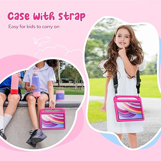 Redmi Pad Pro 12,1 inç 2024 için Çocuk Kılıfı, Saplı ve Omuz Askılı Hafif Kaymaz Kılıf, Pembe