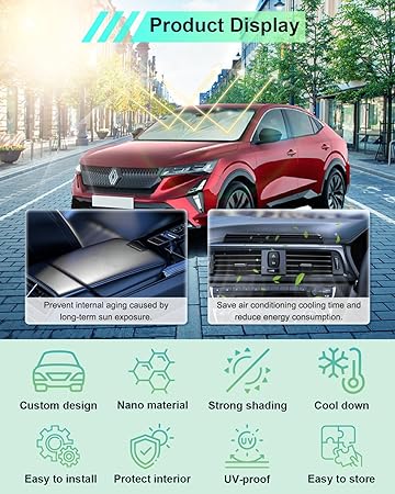 Renault Rafale/Espace 6 2024 2025 2026 ile uyumlu ön cam iç güneş koruması, Rafale 2024’ten itibaren – Ön cam güneş şemsiyesi, güneş siperliği, soğutma, UV koruması, Rafale 2025 aksesuarı