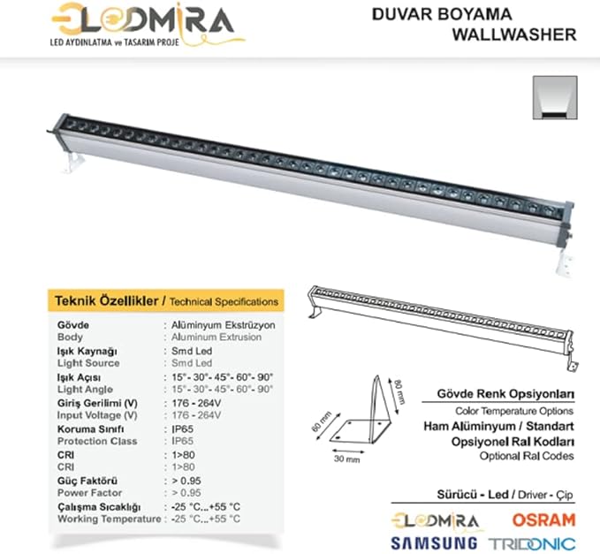 Rengi Wallwasher LED Aydınlatma 10-20-30-35-50-67-100cm Duvar ve Ağaç Boyama (35cm (12w))