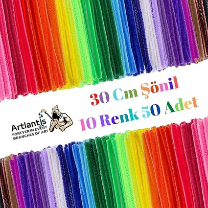 Renkli 30 Cm 50’li 1 Paket Artlantis 30 Cm Renkli Tüylü Tel 50 li 1 Paket