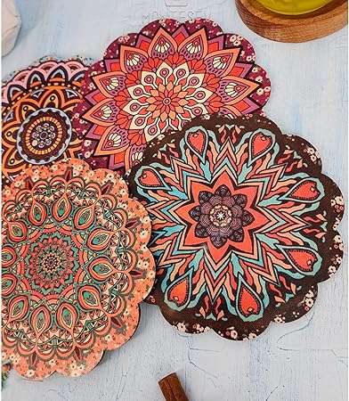 Renkli Desenli Nihale Ahşap Tencere Tava Çaydanlık Atlığı Nihale Seti 4 lü Set MNT-106