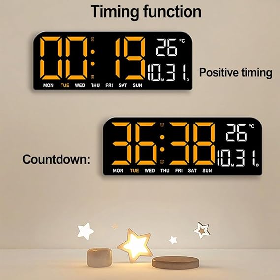 Renkli Dijital Duvar Saati – Sıcaklık, Tarih, Zamanlayıcı, Gece Lambası, Alarm, Geri Sayım Büyük Dijital Çalar Saat – Büyük Ekran Alarmı (turuncu)