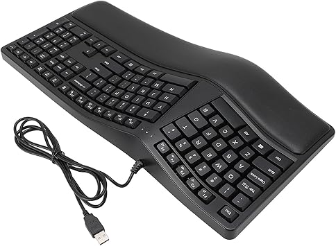 Rest Ile Ergonomik Bölünmüş Klavye – Dizüstü Bilgisayar İçin Sessiz USB 2.0 Kablolu Klavye – Gelişmiş Konfor Için .5m Kablolu 10 tuş