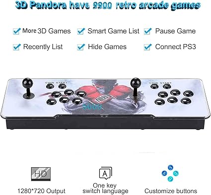 Retro Oyun Konsolu 60000 Dahili Oyun Atari Salonu Oyunları Tek veya 2 Kişilik 4 çekirdekli ÇalışmaGelişmiş ASIMD destekli ARMU8 İşlemci 24cm x 76cm (Monitör Dahil Değildir) M10