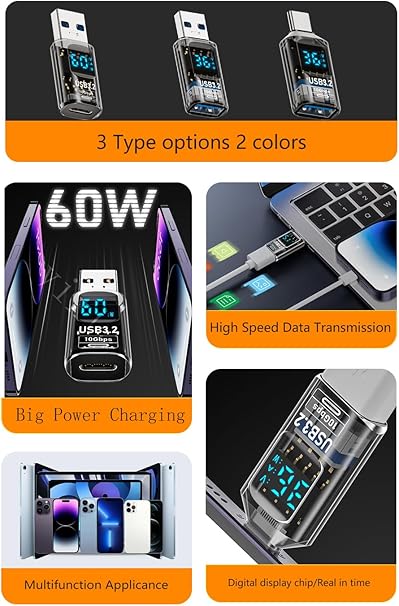 Revolution Type C to USB 3.2 Dönüştürücü 36W Hızlı Şarj 10Gbps Veri Transferi Dijital Ekran OTGGM