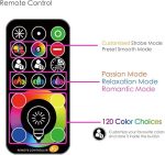 120 renk ve daha fazla ruh hali modu: Bu LED lambanın 120 renk seçeneği ve 2 hafıza düğmesi vardır. En sevdiğiniz rengi renk çarkı üzerinden seçebilirsiniz ve kaydedilir. Hafıza tuşları ile en sevdiğiniz rengi tek bir tuşla açabilirsiniz. Kendin yap Strobe modunun yanı sıra bir parti veya romantik bir an için farklı ruh halleri yaratmak için 4 mod daha eklenir (yumuşak, enerjik, rahatlatıcı, romantik).