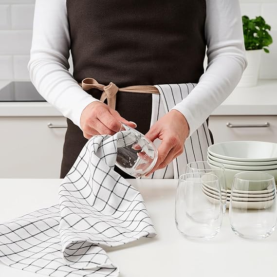 RINNIG Çay Havlu, Beyaz/Koyu Gri/Desenli, 18×24 (45×60 cm)