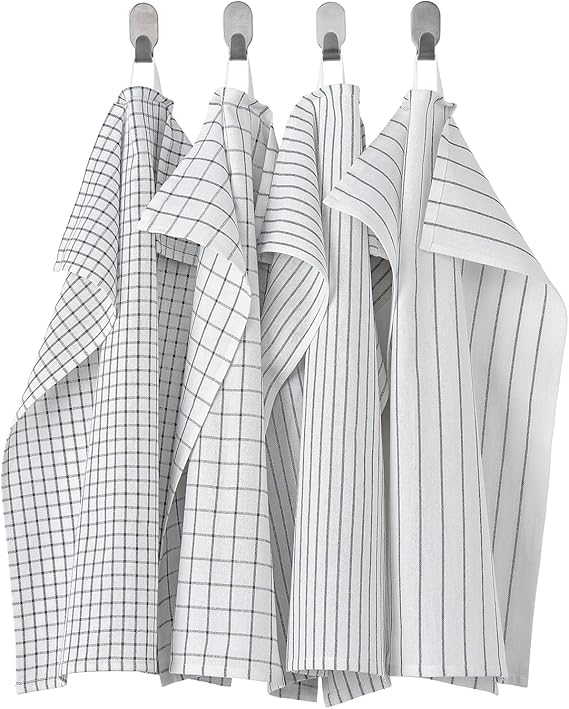 Dörtlü paket, Tüm bu 4 benzersiz mutfak havlusu, ev aksesuarlarınıza mükemmel bir katkı sağlamak için gri ve beyaz tonlarda mevcuttur.