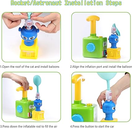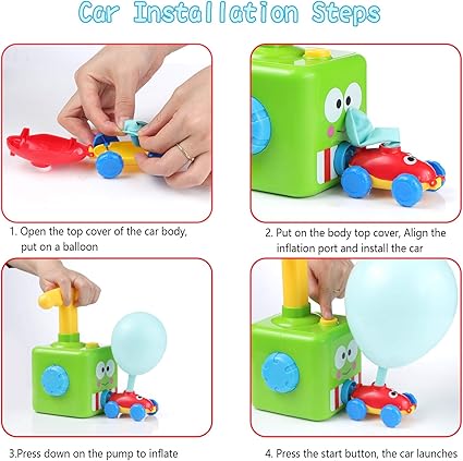 Sadece üç adım alır! Balonu arabaya koyun ve takın, olabildiğince çok balon pompalayın, pompadaki serbest bırakma düğmesine basın ve araç ilerleyebilir.