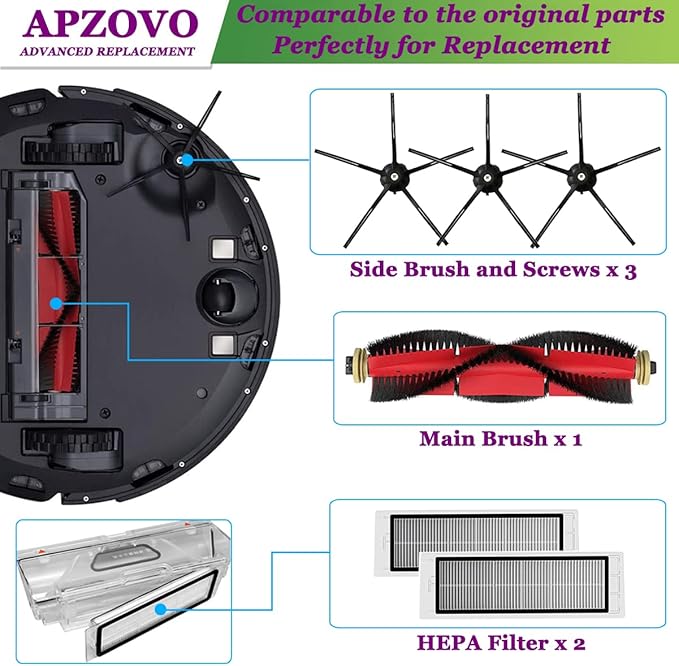 Uyumluluk: Yedek parçalar Xiaomi Roborock S5 Max S6 Max S6 Pure S6 MaxV S50 S51 S55 S60 S65 S5 S6 için uygundur. Elektrikli süpürgenizde daha uzun kullanım ömrü ve optimum performans sağlamak için yedek parçaları 2 ila 3 ayda bir değiştirin.