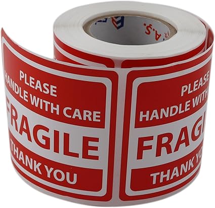 Kırılgan Ürün Etiketi: 70mm x 80mm boyutunda kırılgan ürünler için “Lütfen Dikkatli Taşı” ve “Teşekkürler” yazılı etiketler