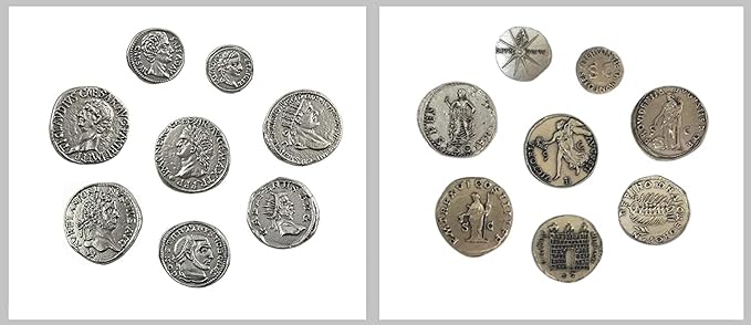 Roma İmparatorluk Paraları – Reprodüksiyon Antik Roma Paraları – Gümüş Kaplama Metal – Set 8 İmparator Antik Roma