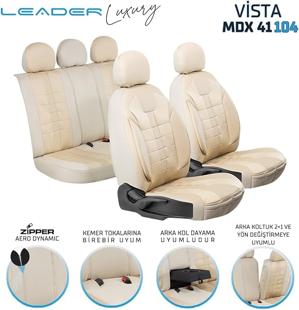Romeo 156 Sportwagon ile Uyumlu Lüx Deri Detaylı Oto Koltuk Kılıfı Ön Arka Takım Vista BEJ