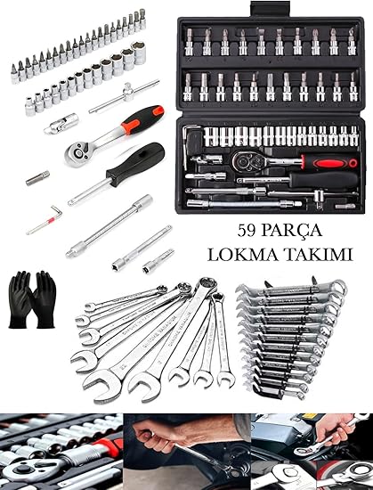 59 Parça 46 Mini Lokma Otomatik Cırcırlı 1/4″ 12 Parça Kombine Anahtar Lokma Takımı
