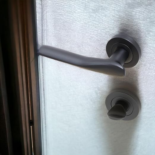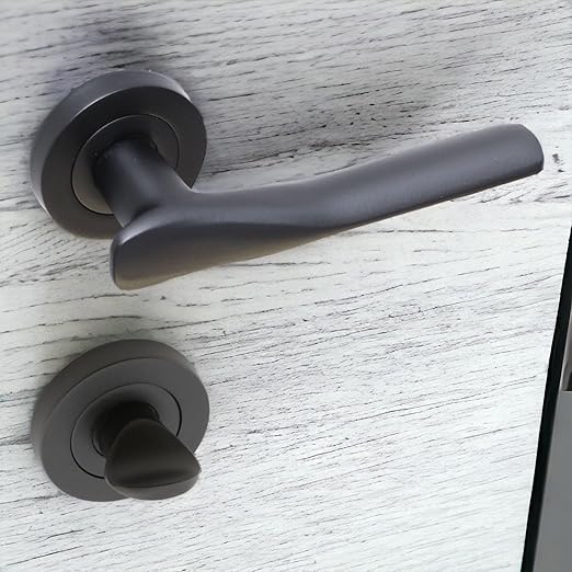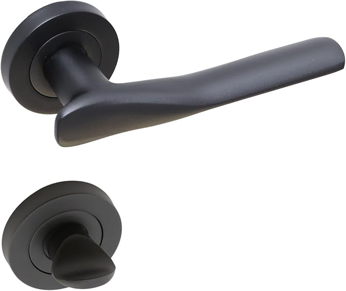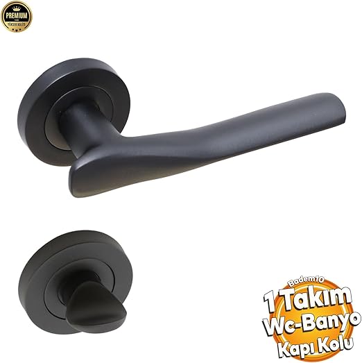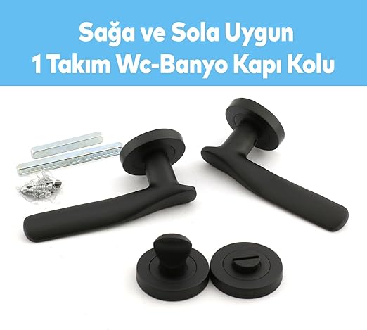 Royal Mat Siyah Wc Banyo Kapı Kolu Daire Rozetli SürgülüKapı Kulpu Uyumlu Sağ Sol Uygun Kolları