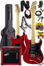 RPH-40RD-25AMP 25W Şarjlı BT Amfili Elektro Gitar Seti HSH Manyetik Maple Klavye