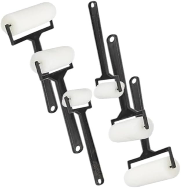 Rulo Fırça 6 lı 1 Paket Siyah Plastik Saplı Boyama Süngeri Sanatsal Sünger Boya Fırçası Parmak Guaj Akrilik Boya