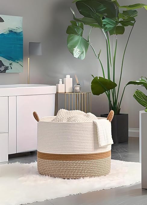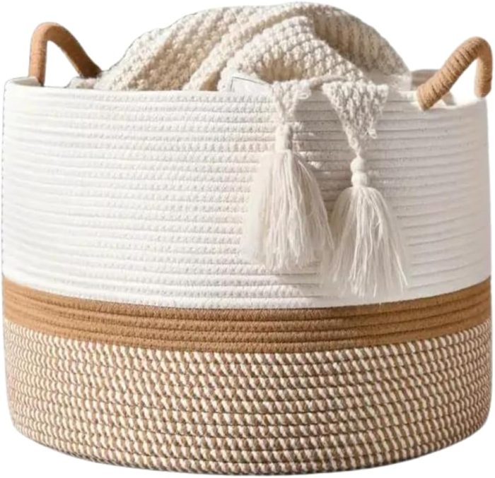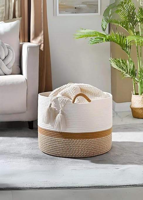 Rustic Retreat Jüt Kapaklı Moderin Tssarım Geniş Hacim Kapasiteli Çamaşır Oyuncak Havlu Battaniye Giyisi Sepeti Zarif Ve Estetik Tasarım Depolayıcı Organizer Y (Jüt_beyazkırçıl)