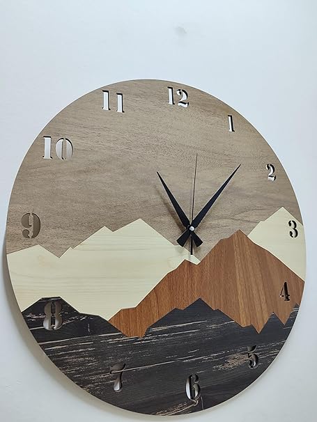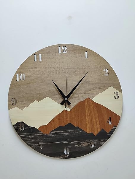 Benzersiz Tasarım: Modern ve rustik bir görünüme sahip olan bu ahşap duvar saati, dağ motifleriyle süslenmiştir. Evinize veya ofisinize farklı bir hava katacaktır.