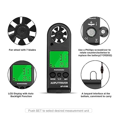 ✅【Dijital çok amaçlı anemometre】Rüzgar hızı ölçüm cihazı AP-816B sadece atış, yelken ve dağcılık gibi dış mekan aktiviteleri için değil, aynı zamanda HLK cihazları gibi elektrikli cihazları test etmek ve navigasyondan havadaki ölçüme kadar araştırma ölçümleri için de kullanılabilir.