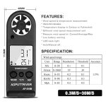 Rüzgar ölçer, el dijital LCD rüzgar hız ölçer, hava akışı, arka plan aydınlatmalı, ölçüm termometresi, rüzgar sörfü, yelken, balıkçılık vs. için
