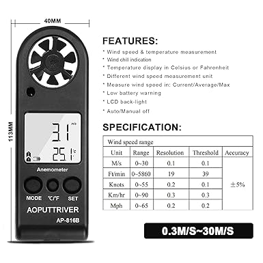 ✅【Yüksek hassasiyetli ölçüm】 0,3 ila 30 m/sn rüzgar hızı (toprakın ±%5’i), çözünürlük 0,1 m/s; 0,2 ℃, sıcaklık -10 ℃ ~ 45 ℃ (± 2 ℃) ve yüksek doğruluk ve gerçek zamanlı ölçümde rüzgar soğuğu.