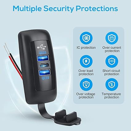 Kapsamlı Güvenlik Koruması: Bu 12V USB şarj cihazı panelinde suya ve toza dayanıklı kauçuk bir kapak bulunur. Ayrıca kısa devrelere, aşırı yüklenmelere ve aşırı ısınmaya karşı koruma sağlayan dahili bir IC yongasına sahiptir