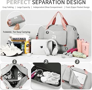 【Dayanıklı ve Suya Dayanıklı Spor Çantası】Kadınlar için spor çantası, dayanıklı, su geçirmez ve yırtılmaya dayanıklı yüksek kaliteli polyester kumaştan yapılmıştır. Uzun süreli kullanım için ideal.
