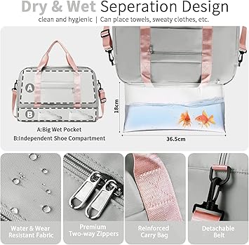 【Kuru ve Islak Ayrılmış】 Spor ayakkabının ana bölmesinde ıslak havlularınızdan veya mayolarınızdan herhangi birini içerebilen ayrı bir su geçirmez ıslak cebi vardır. Ek olarak, bir ayakkabı bölmesi ile donatılmış spor çantası, ıslak ve kirli ayakkabıları temiz kıyafetlerden veya diğer eşyalardan uzak tutabilir.