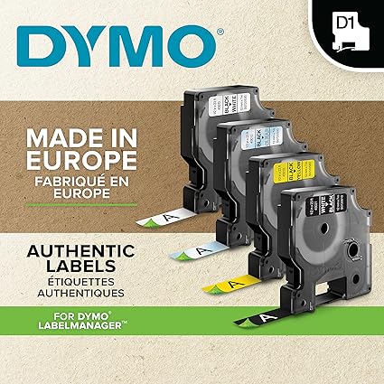 Dymo D1 Standart Şerit 12 mm genişlik, 7 metre uzunluk (Sarı Üstüne Siyah baskı)