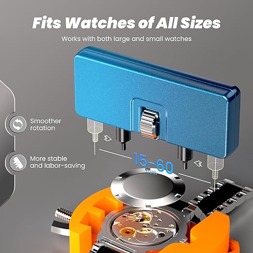 【Farklı saat kapakları için uygundur】 Saat zemini açacağı, oluklu saat gövdeleri için kullanılır; kırıcı açma delikli saat gövdeleri için kullanılır; tornavida, vidalarla sabitlenmiş saat gövdeleri için kullanılır; cımbız pili çıkarmak için kullanılır. Saat gövdesi açacağının kullanım alanı 15 – 60 mm’dir ve matkap mesafesi ayar çarkını döndürerek saat gövdesinin oluğuna ayarlanır.