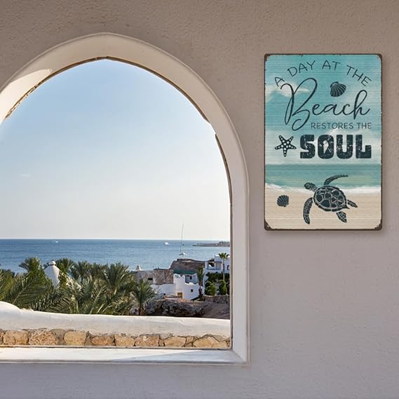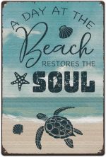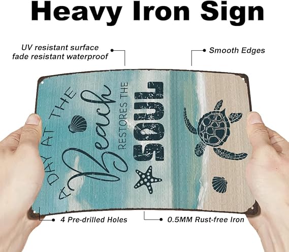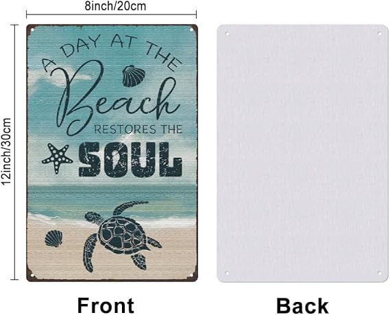 Sac Levha A Day At The Beach Metal Levha Kaplumbağa Retro Sac Levha Demir Retro Sac Levha Ev Duvar Dekorasyonu Kafe Bar Tuvalet Yatak Odası Oturma Odası için Metal Levha