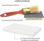 1 x Çin kıllı düz fırça, yakl. 35 mm genişliğinde, eşit ahşap yağı sürmek için, 5 adet bez, kumaş benzeri ince yapı ve özellikle çevre dostu, %100 doğal viskoz