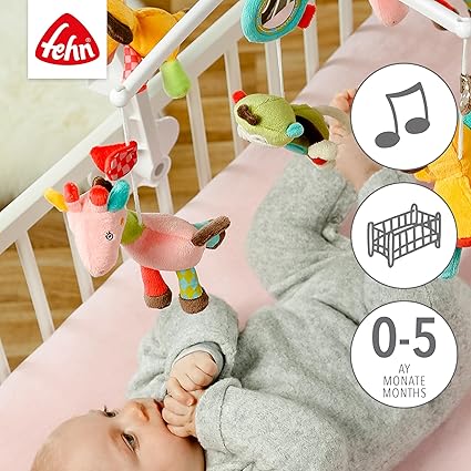 SAKİNLEŞTİRİCİ MÜZİK – Mekanik müzik kutusunun popüler melodisi “Brahm’s Ninni” yumuşak figürleri dans ettirir ve bebeği dinlemeye teşvik eder – açma/kapama düğmesi sayesinde istediğiniz zaman kapatılabilir
