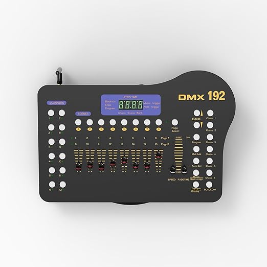 Güçlü Kontrol İşlevselliği: DMX MASTER, her biri 16 kanaldan oluşan 12 armatür ve her biri 8 sahneden oluşan 23 grup olmak üzere, depolama ve çalıştırma için toplam 184 sahne olmak üzere 192’ye kadar DMX kanalını kontrol edebilir. Kullanıcılar kontrol panelinden aydınlatma efektlerini kolayca seçip ayarlayabilir.
