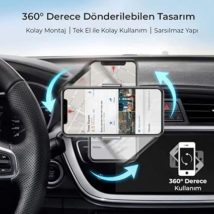 360 Derece Dönüş Özelliği: Telefonunuzu 360° döndürme kapasitesi ile istediğiniz açıda kullanabilirsiniz. İster yatay, ister dikey kullanım sağlayarak en iyi izleme ve erişim açısını yakalayın. Tek elle telefonunuzu takıp çıkarma kolaylığı sunar.