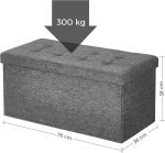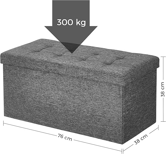 [Geniş depolama alanı] 38 x 76 x 38 cm ölçüleriyle oturma bankı 89 l kapasite sunar ve böylece kitaplar, battaniyeler vb. için geniş alan sunar. Katlanır kapağı sayesinde taburedeki eşyalara kolayca erişebilirsiniz