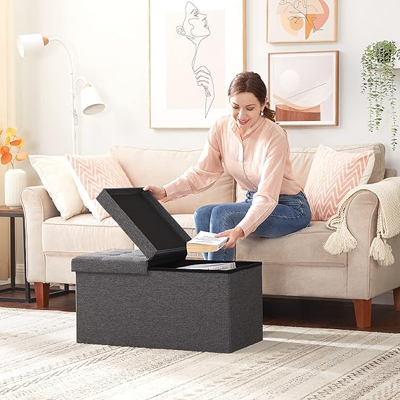 [Rahat oturak] Bu saklama kutusu, yumuşak, destekleyici ve nefes alabilen bir oturma sağlamak ve yüksek konfor sağlamak için yüksek yoğunluklu köpük ile doldurulmuştur ve suni keten ile kaplanmıştır