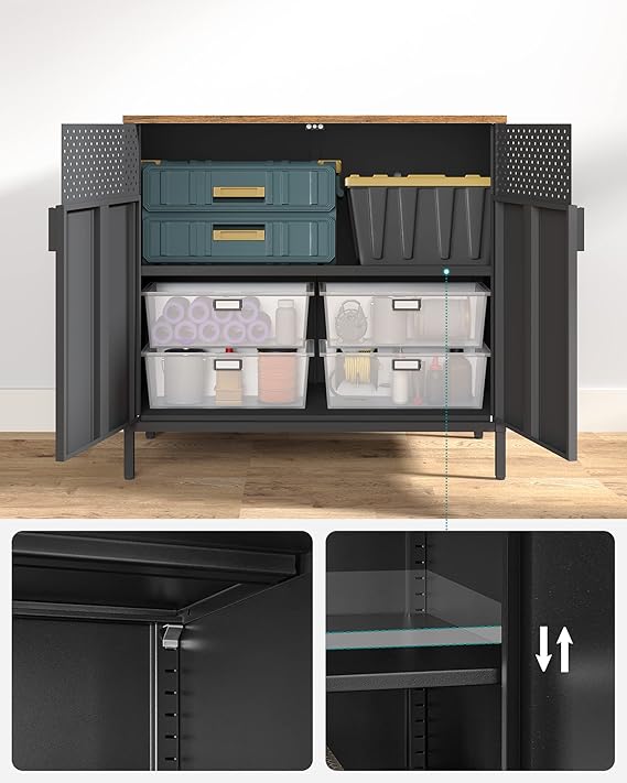 saklama dolabı, metal dolap, çift kapılı, manyetik kapatma, ayarlanabilir raf, çelik çerçeve, vintage kahverengi-siyah LSC102B01