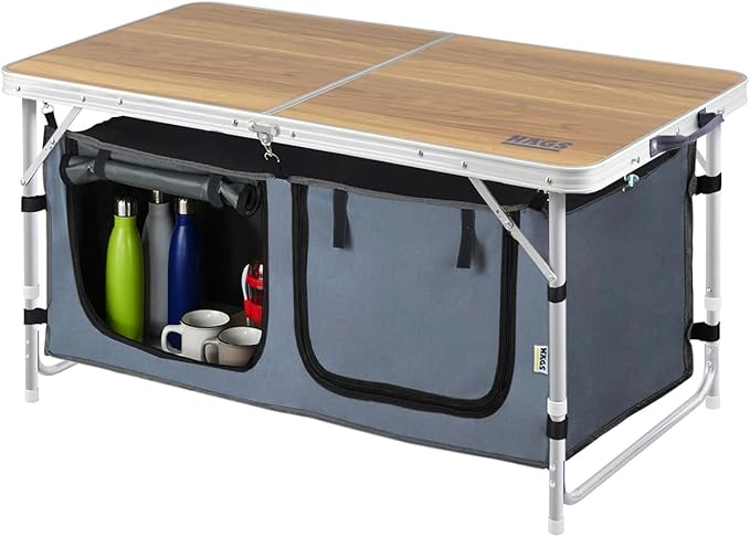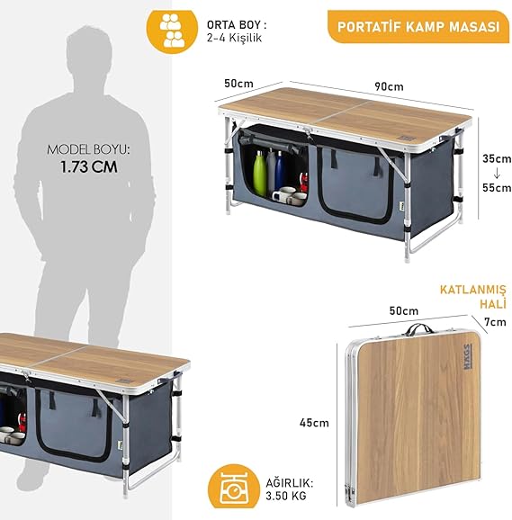 Saklama Dolaplı Kamp Masası, Outdoor Kamp Mutfağı, Kamp Dolabı, Katlanabilir Kamp Piknik Masası, Seyahat Mutfağı, Mutfak Dolabı, Depolama bölmeli, Dış Mekan Mutfağı 90x50cm Hareli Ceviz