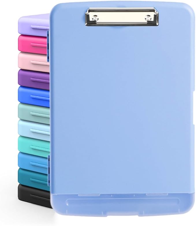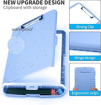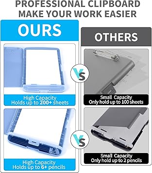 Saklama panosu, sağlam klipsli pano, kalem tutuculu, A4 plastik kıskaçlı tahtalar, düşük profil klipsli güçlü sıkıştırma tahtaları, iş için ideal (açık mavi)