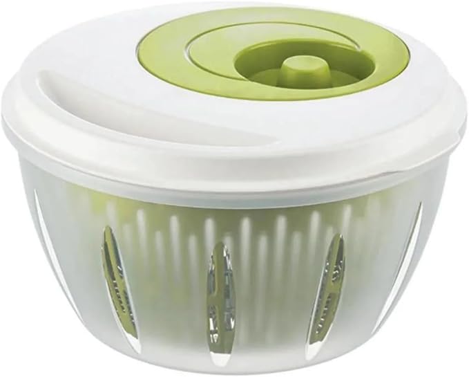 Salata Kurutucu, Sebze Yeşillik Marul Yıkama ve Kurutma Kabı Leğen Şeklinde Çevirmeli (Beyaz-Yeşil)