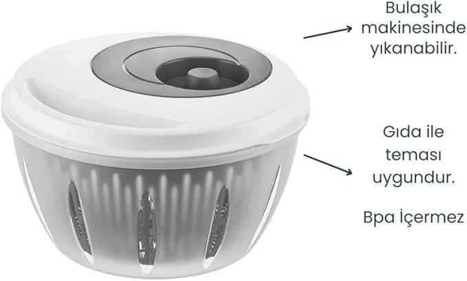 ÇEVİRMELİ MEKANİZMA – Salata kurutucuyla sebzeleri yıkayabilir, süzebilir ve çevirmeli mekanizmasıyla ivmeli şekilde çevirerek suyu iyice süzmesini sağlar. Böylece sebzelerinizin kuruması oldukça hızlanır.