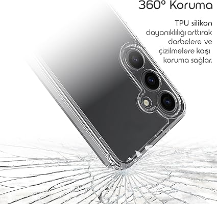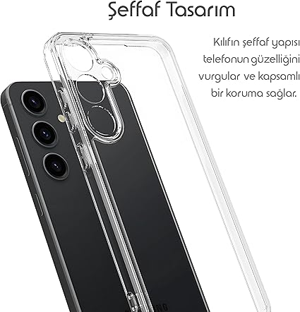 Temiz ve Şeffaf Tasarım: Cihazın kendi rengini ve tasarımını korurken zarif ve estetik bir görünüm sunar. Kılıfın şeffaf yapısı, telefonun güzelliğini vurgular ve koruma sağlar.