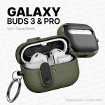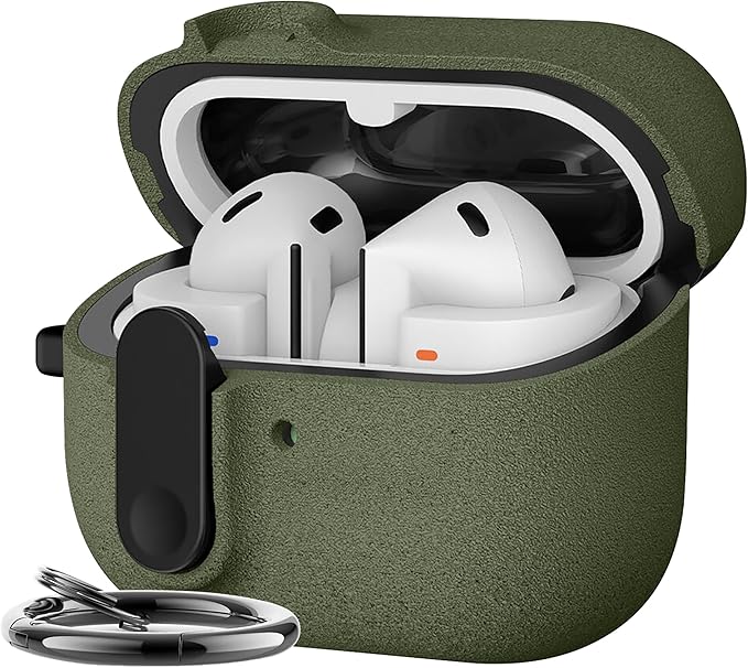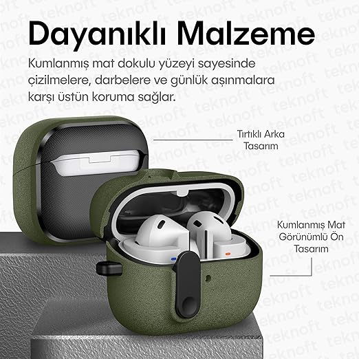 Samsung Galaxy Buds 3 Pro ve Buds 3 ile Uyumlu Mandallı Kapak Kilit Sistemli Kumlanmış Mat Dokulu Darbelere Dayanıklı Hibrit Kılıf (Yeşil)