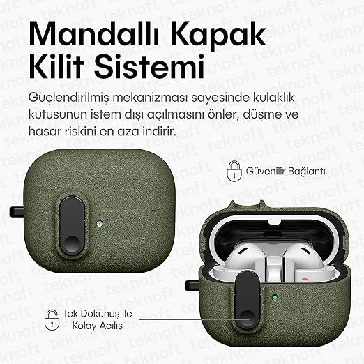 Mandallı Kapak Kilit Sistemi: Güçlendirilmiş mekanizması sayesinde kulaklık kutusunun istem dışı açılmasını önler, düşme ve hasar riskini en aza indirir. Sağlam yapısı güvenli kapanma sağlarken, pratik tasarımı kolay kullanım sunar.