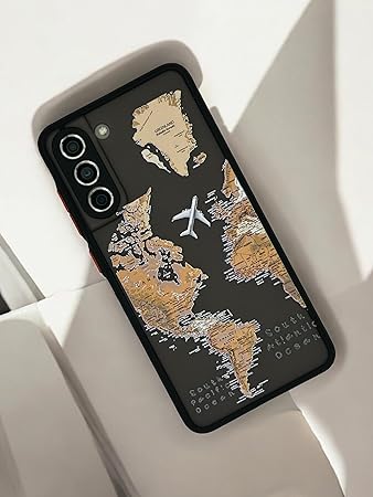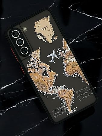 Samsung Galaxy S21 FE (Fan Edition) Uyumlu Dünya Haritası Desenli Kamera Korumalı Mat Transparan Plastik Arka Kapak Tpu Silikon Kenarlar Şık Ve Dayanıklı Koruma Hux Kılıf (Siyah Harita)